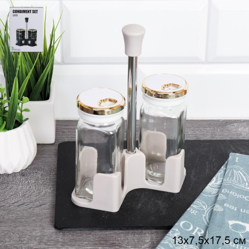 Набор для специй 2 предмета на металл подставке / T021-13 /уп 42/ стекло/пластик