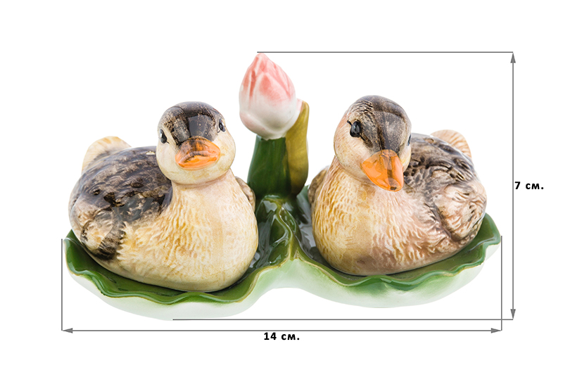 Набор для специй «Уточки» от Elan Gallery предназначен для эстетичной сервировки вашего стола. Включает в себя солонку, перечницу и подставку. Размер солонки – 9,5х5,5х5,5 см, перечницы – 9х5,5х5,5 см. Объём каждой ёмкости – 40 мл. Размер набора на подставке – 14х10х7 см. Выполнены из керамики в виде пёстрых уточек. Подставка имеет форму двух листиков и стебля с розовым бутоном. Комплект поможет держать под рукой все необходимые во время приготовления еды специи и приправы. Подайте его к столу в будни или на праздник, чтобы каждый мог приправить блюда по своему вкусу. Контейнеры наполняются через отверстия снизу и закрываются пластиковыми пробками. Фигурная подставка позволит компактно хранить ёмкости. Используйте их без наполнения в качестве фигурок для декора. Расположите на столе, тумбочке или полке. Благодаря необычному дизайну сервировочное изделие разнообразит интерьер кухни, столовой или гостиной. Добавьте вашему дому тепла вместе с симпатичными птичками. Не рекомендуется применять абразивные моющие средства. Не подходит для использования в посудомоечной машине и микроволновой печи. Поставляется в дизайнерской картонной коробке – благодаря ей вам не потребуется дополнительная подарочная упаковка. В коллекции бренда Элан Галерея представлен богатый выбор декоративной посуды и красивых сувениров – каждый обязательно подберёт вариант на свой вкус. Они станут оригинальным подарком для родных, близких и коллег. Преобразите пространство вокруг себя, наполнив его неповторимым очарованием!