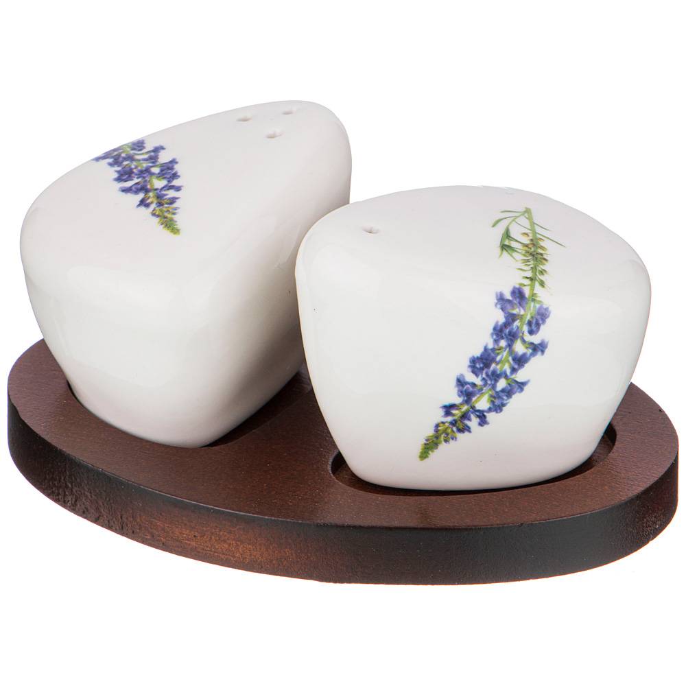 Комплектность: солонка 6*4,5 см - 1 шт., перечница 6*4,5 см - 1 шт., деревянная подставка 11*8 см - 1 шт