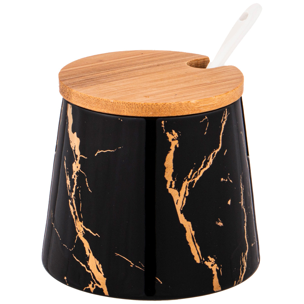 Коллекция "Fantasy" ТМ LEFARD - это модная сервировка стола и стильный кухонный интерьер в классическом черном с золотом цвете. Блюда и формы различных размеров, менажницы на бамбуковых подставках, банки, тарелки и салатники различного назначения, чайники, чайные пары и кружки выполнены из упрочненного фарфора. Четкие линии, сверкающее глянцевое покрытие. Вы и Ваш стол неотразим! Посуда прошла сертификацию. Безопасна для контакта с пищевыми продуктами. Можно использовать в микроволновой печи. Не рекомендуется мыть в посудомоечной машине. Комплектность: банка с крышкой 280 мл - 3 шт, ложка фарфоровая - 3 шт, подставка деревянная 28*10*8,5 см - 1 шт.