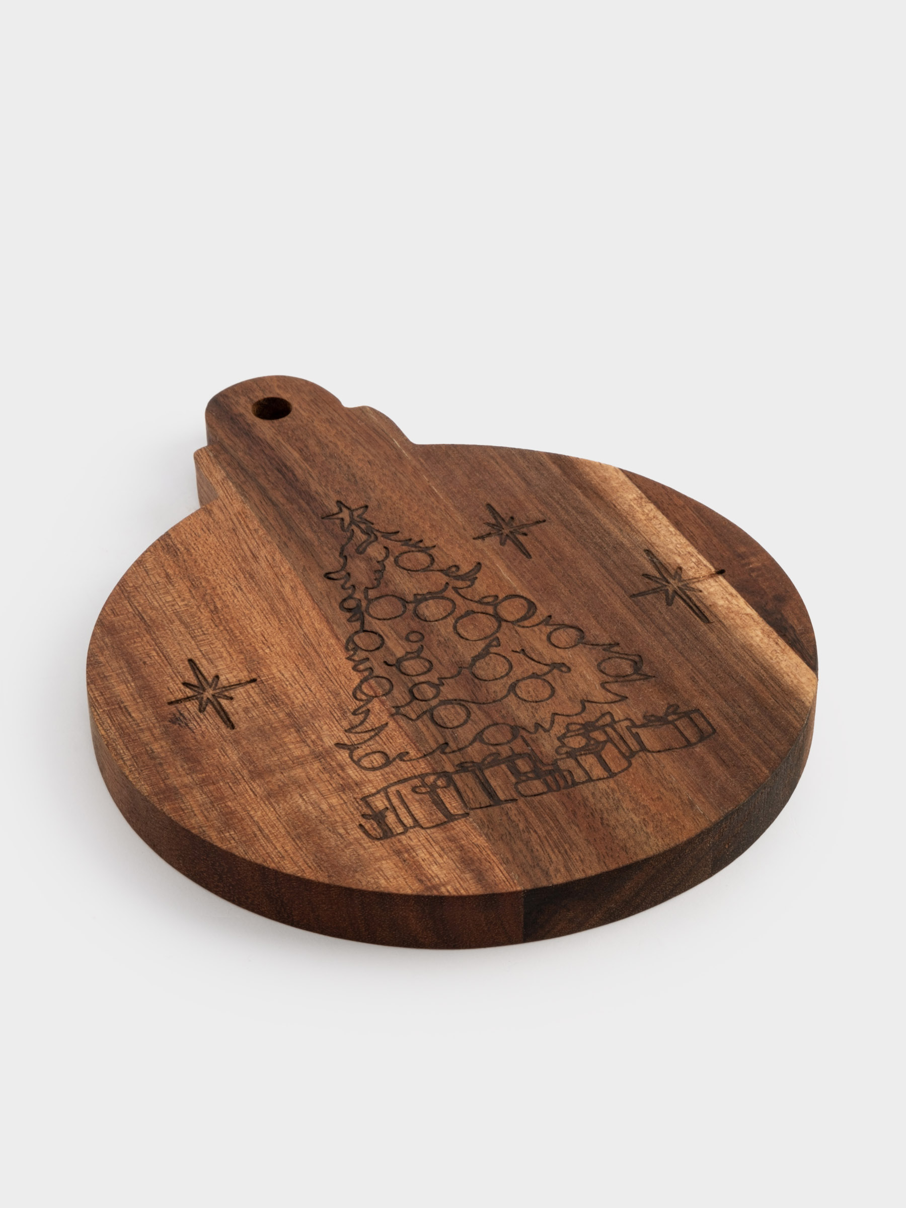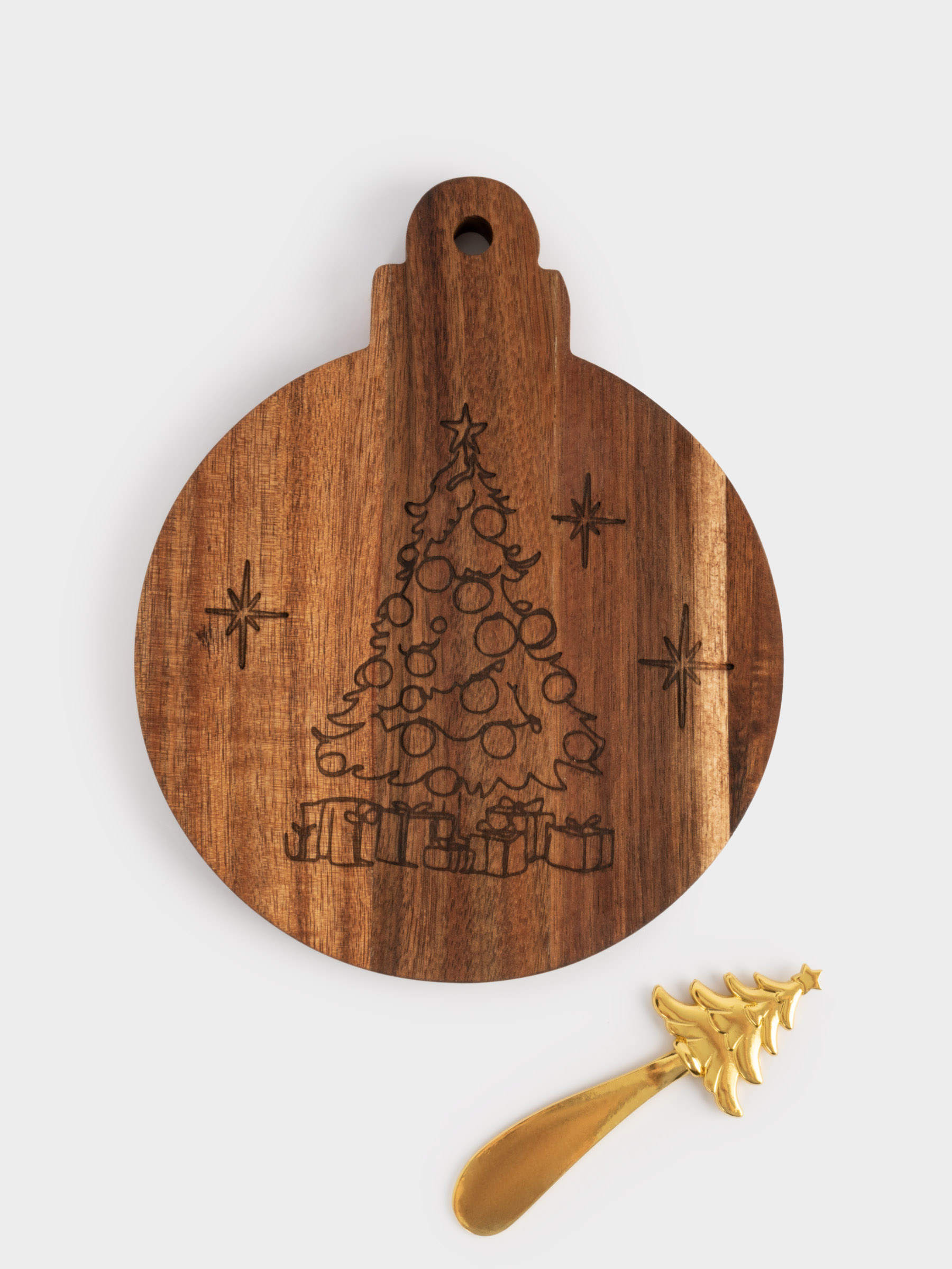 Набор для сыра, 2 пр, доска-блюдо, сталь/дерево, золотистый, Новогодний шар