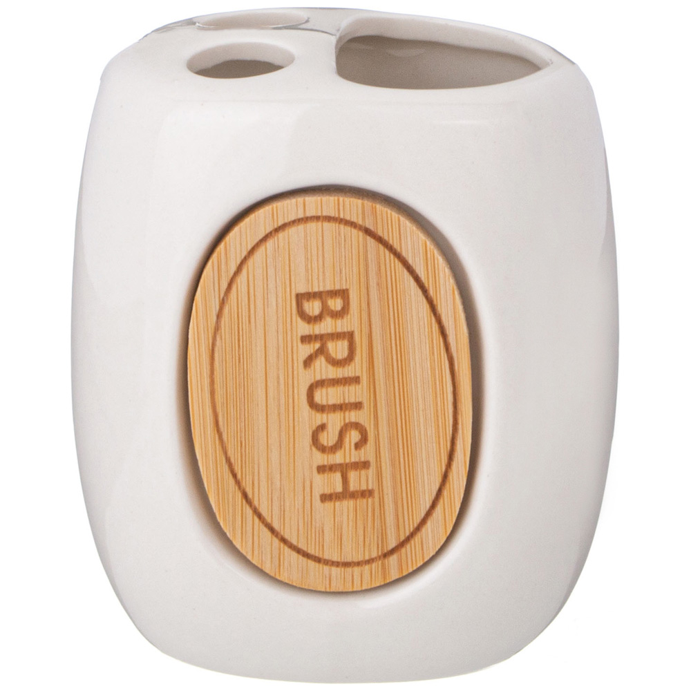 Набор аксессуаров для ванной комнаты состоит из дозатора для жидкого мыла и подставки для зубных щёток.