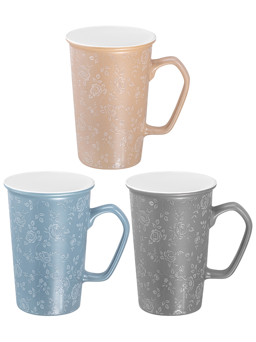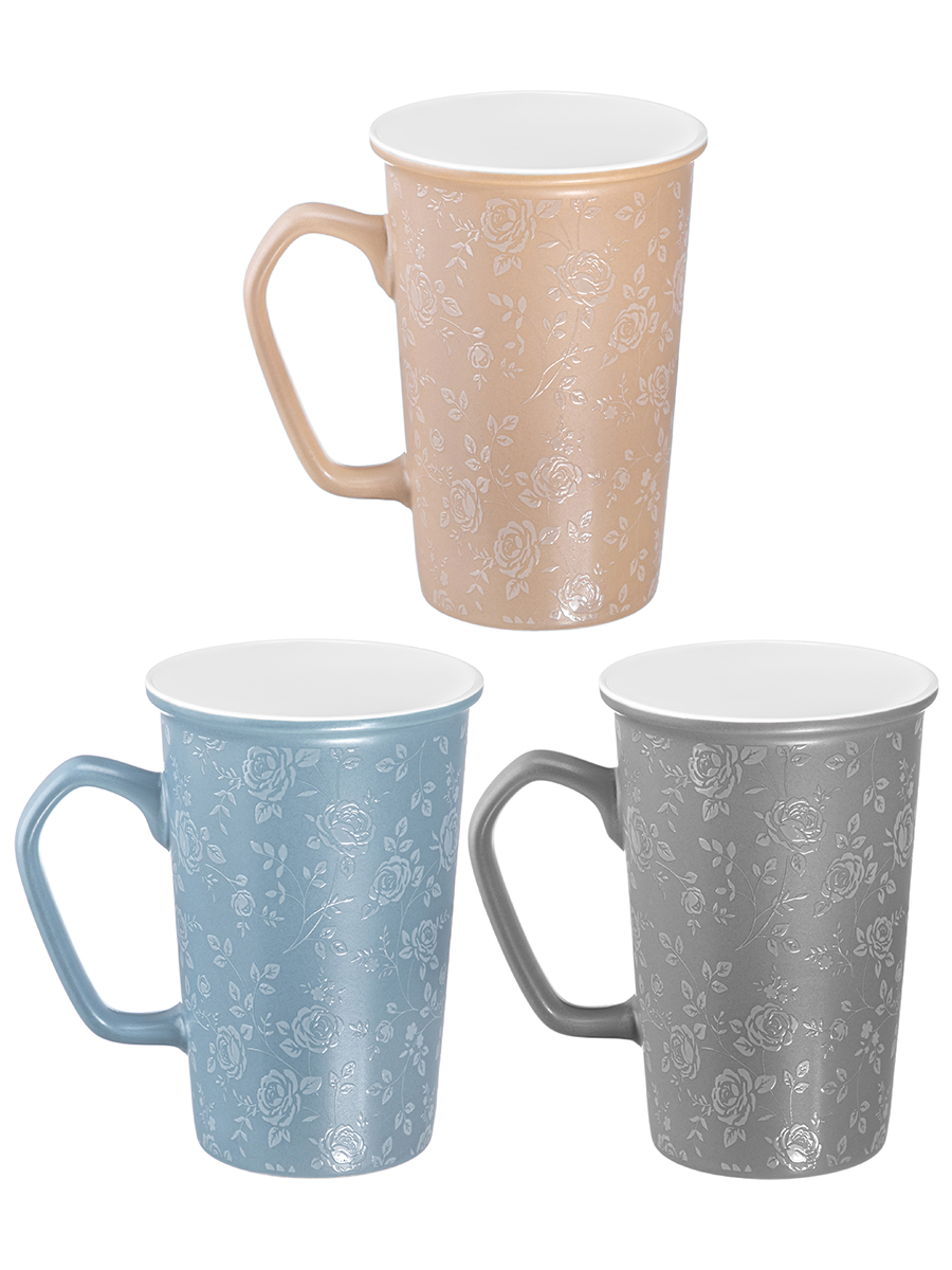 Набор кружек 3 пр. 420 мл 12,5*9*13 см "Чайные розы", разноцветные, фарфор