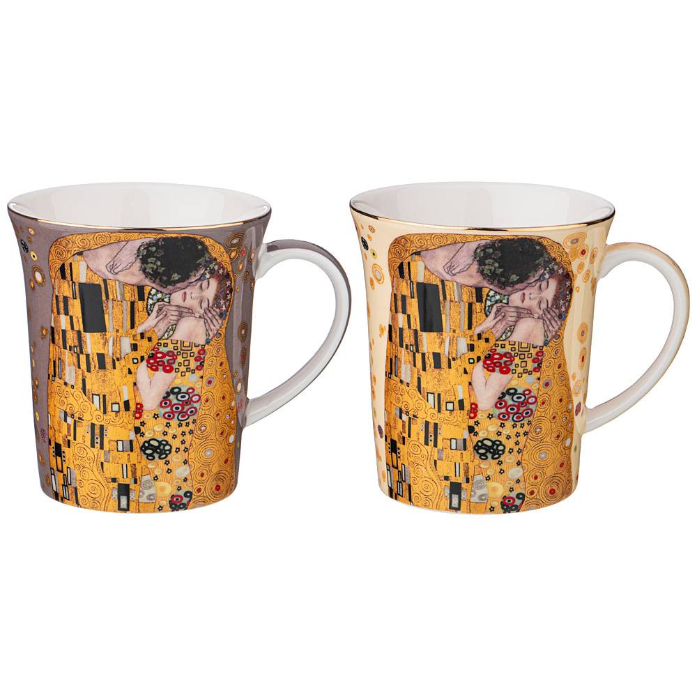 НАБОР КРУЖЕК LEFARD "ПОЦЕЛУЙ" (Г. КЛИМТ) 2 ШТ. 420 МЛ, КРЕМОВАЯ, СЕРАЯ (КОР=24НАБ.)