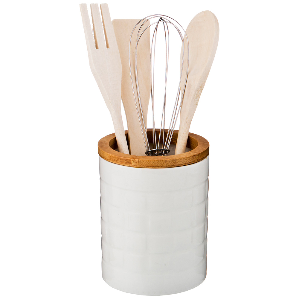 Бамбуковые элементы имеют приятную на ощупь текстуру и являются гармоничным дополнением к белому фарфору. Бамбук с белым – классика для Вашей кухни!