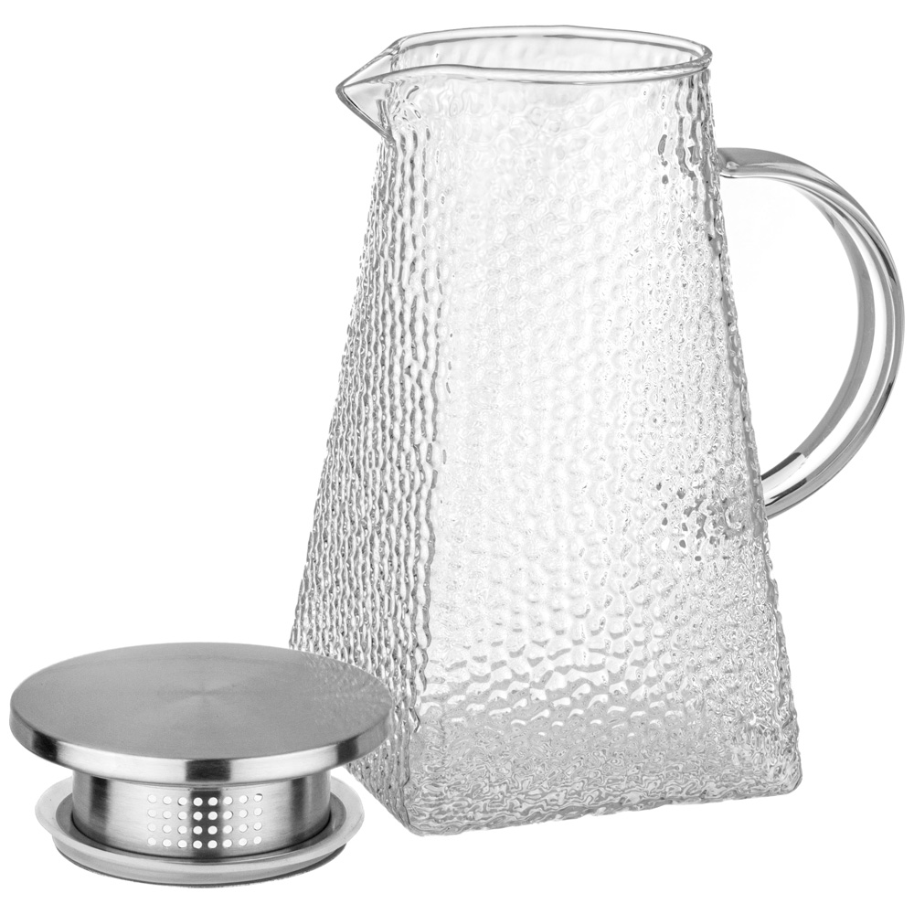 Кувшин оснащен удобной ручкой и плотно закрывающейся крышкой. Крышка снабжена силиконовым уплотнителем, благодаря которому она надежно удерживается на корпусе.