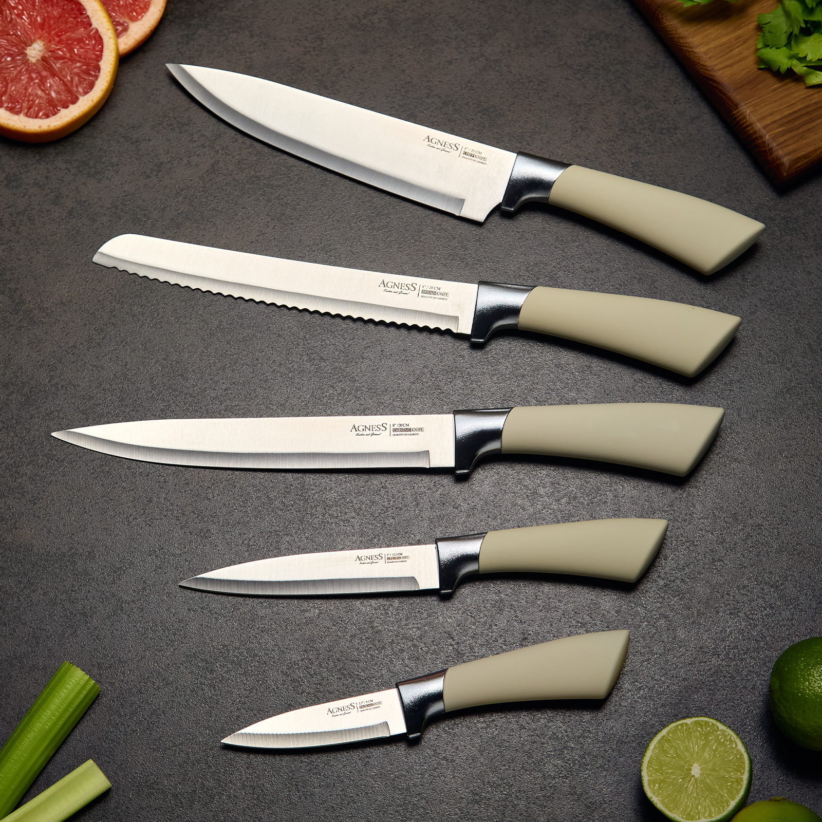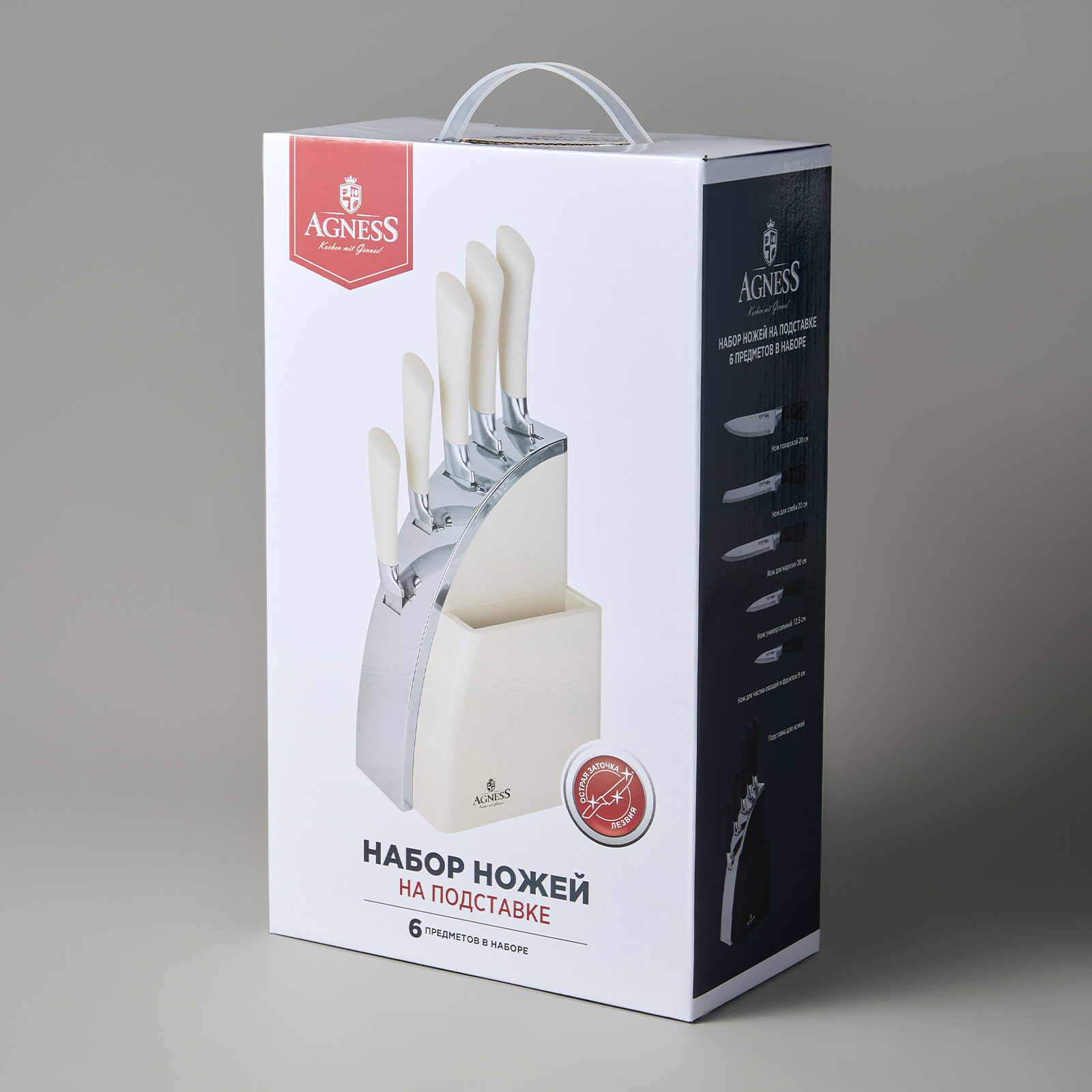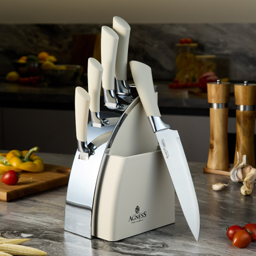Нож - главный инструмент на кухне, а вернее ножи, т.к. даже самый лучший нож не сможет справиться со всем многообразием задач. Выбирая набор ножей AGNESS - Вы приобретаете комплект самых необходимых и чаще всего используемых ножей. Преимущества ножей AGNESS: