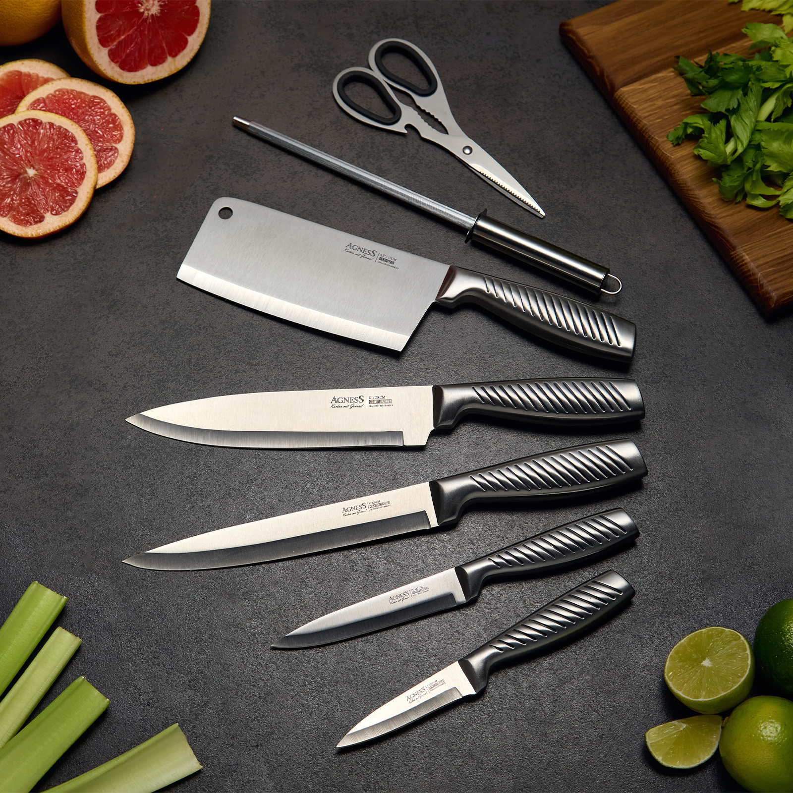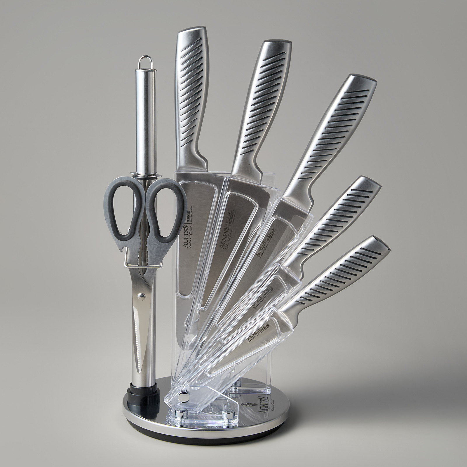 Нож - главный инструмент на кухне, а вернее ножи, т.к. даже самый лучший нож не сможет справиться со всем многообразием задач. Выбирая набор ножей AGNESS - Вы приобретаете комплект самых необходимых и чаще всего используемых ножей. Преимущества ножей AGNESS: