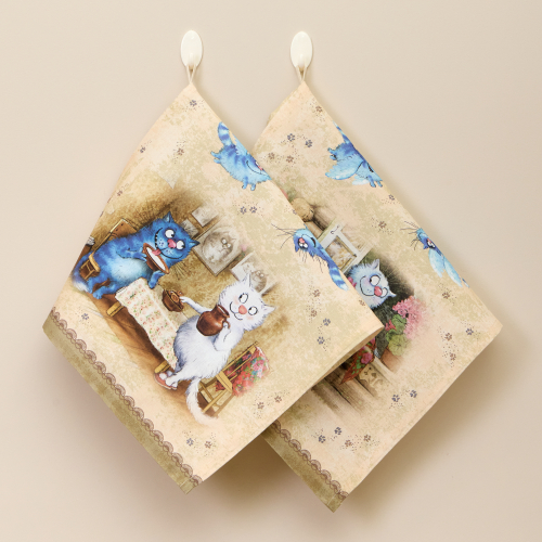 НАБОР ПОЛОТЕНЕЦ ИЗ 2Х ШТ "СИНИЕ КОТЫ. ЛАВАНДА",40Х70СМ, 100% ХЛОПОК,ТВИЛ, БЕЖ