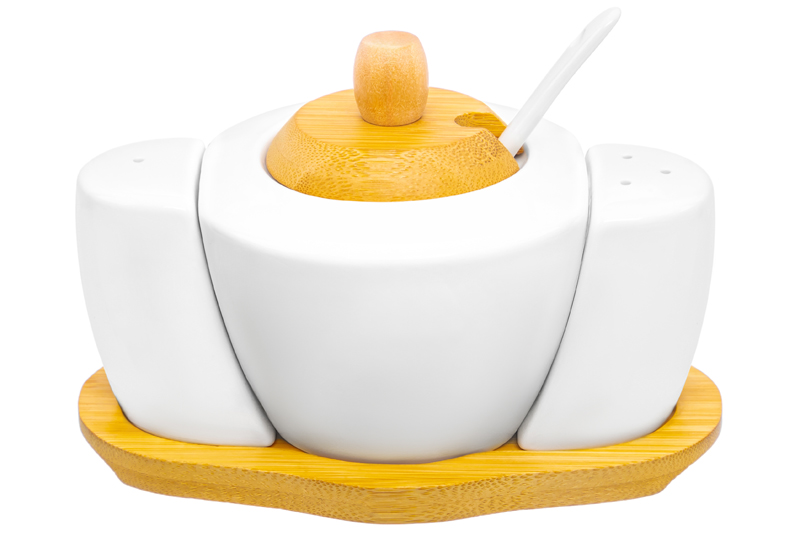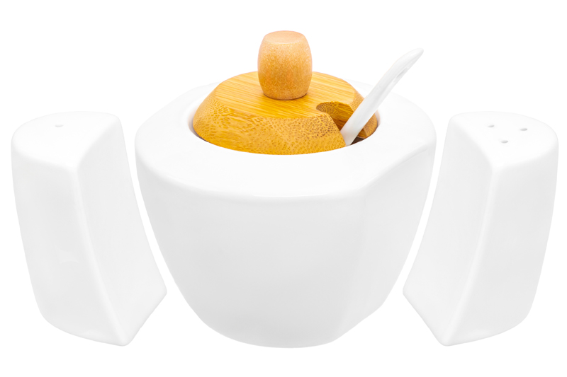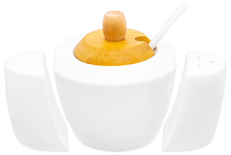Набор - сахарница 300 мл 16*10*11 см "Айсберг" с ложкой + солонка + перечница на дер. подст.