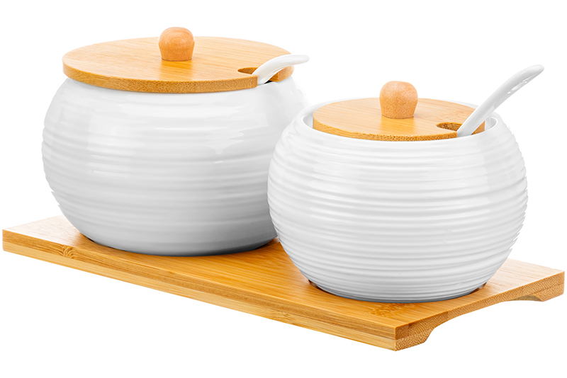 Набор - сахарница 350 мл + солонка 230 мл 20,5*11*9 см "Шелк" + 2 ложки на дер. подст.