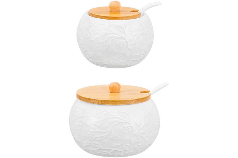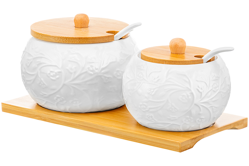 Набор - сахарница 350 мл + солонка 230 мл 20,5*11*9 см "Веточки-цветочки" + 2 ложки на дер. подст.