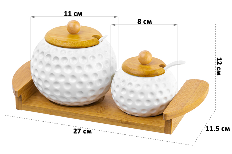 Набор - сахарница 550 мл + солонка 170 мл 27*11,5*12 см "Сфера" + 2 ложки на дер. подст.