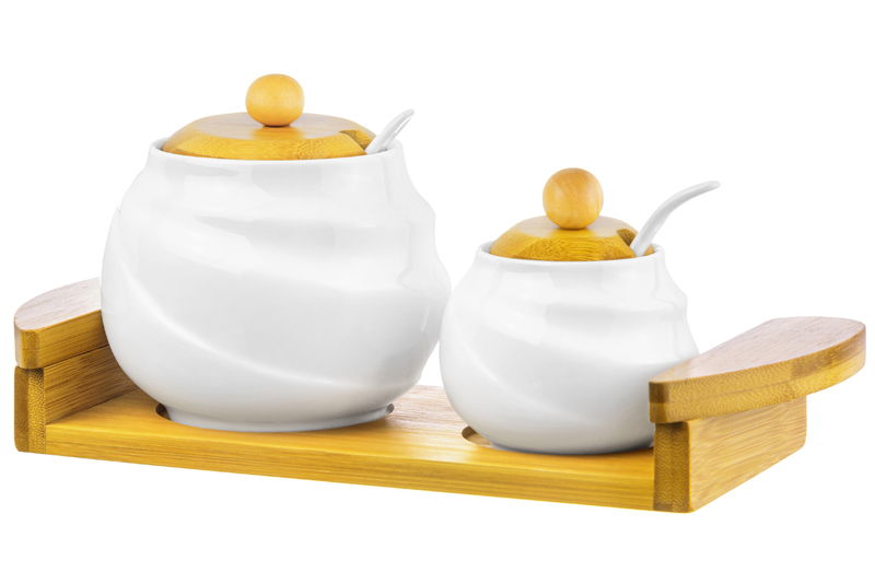 Набор сахарница и солонка серии "Айсберг волны" - объем сахарницы 590 мл, а солонки 210 мл с фарфоровой ложкой деревянной крышкой и деревянной подставкой, выполнен из высококачественного фарфора, а крышка и подставка из натурального бамбука. Теплое цветовое решение и изящный рельеф баночек подходит любой сервировке и добавит уюта в каждый дом. В серии фарфоровой посуды с использованием бамбука представлен широкий ассортимент товаров для сервировки стола, которые, несомненно, впишутся в любой интерьер благодаря лаконичному дизайну, натуральным материалам и высокой функциональности. Такому подарку будет рада любая хозяйка!