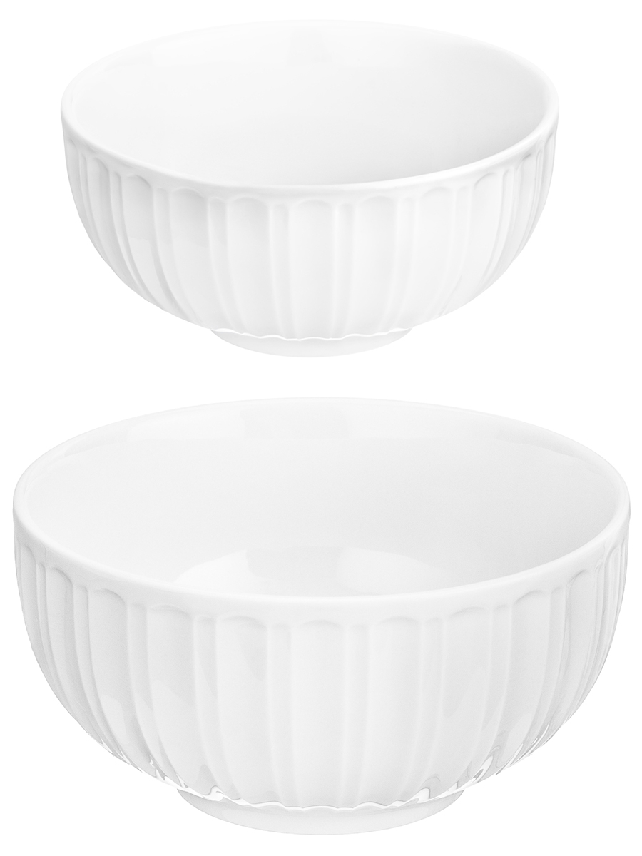 Набор 2 салатников из серии «Ампир» от Elan Gallery предназначен для эстетичной сервировки вашего стола. Включает изделия разных размеров: 11,5х11,5х6 см (объём – 300 мл) и 14х14х7,5 см (объём – 550 мл). Выполнены из высококачественного белого фарфора. Он не впитывает цвет продуктов и легко отмывается, благодаря чему надолго сохраняет свою белизну. Поверхность изделий украшает элегантный ребристый рельеф. Крышки выполнены из натурального бамбука и оснащены силиконовыми уплотнителями. Круглые миски станут идеальным вариантом для любителей здорового питания. Используйте их для приготовления и подачи салатов, а также сервирования овощей и фруктов. Кроме того, они подойдут для холодных закусок и гарниров, разнообразных сладостей и десертов. Задействуйте ёмкости в качестве конфетниц для организации уютного чаепития. Герметичные крышки позволят вам хранить готовые блюда в холодильнике. Не рекомендуется применять абразивные моющие средства. Без бамбуковых крышек подходят для использования в посудомоечной машине и микроволновой печи. Бамбук нельзя замачивать! Поставляются в дизайнерской картонной коробке – благодаря ей вам не потребуется дополнительная подарочная упаковка. Фарфоровая сервировочная посуда будет оригинальным подарком для хозяйки, ценящей не только практичность, но и привлекательность. Серия «Ампир» от бренда Элан Галерея станет украшением любого кухонного инвентаря и позволит собрать красивый сервиз в едином стиле!