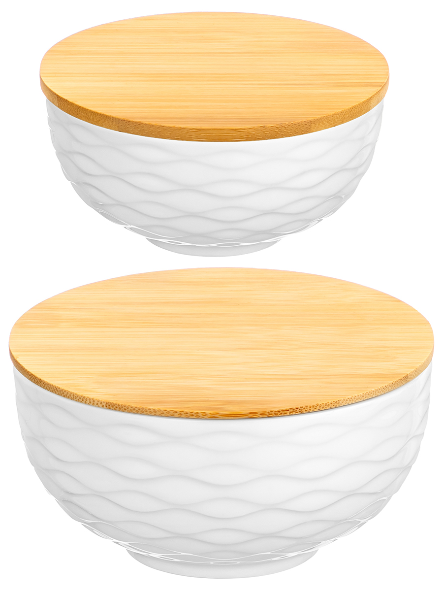 Набор салатников 2 пр. 300 мл 11,5*11,5*6 см + 550 мл 14*14*7,5 "Айсберг волны" с деревян. крышками