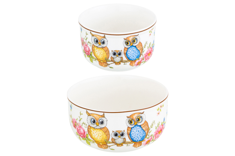 Набор салатников 2 пр. 560 мл 13*13*6,5 см + 260 мл 10,5*10,5*6 см "Совушки" NEW BONE CHINA