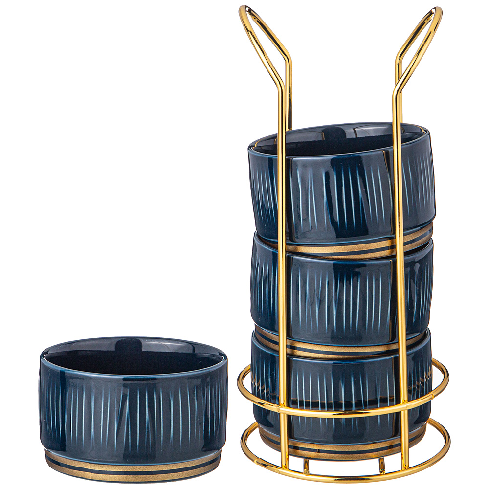 НАБОР САЛАТНИКОВ LEFARD "HERBAL" НА МЕТАЛЛ. ПОДСТАВКЕ 4 ШТ. 9*5 СМ 230 МЛ СИНИЙ (КОР=12НАБ.)