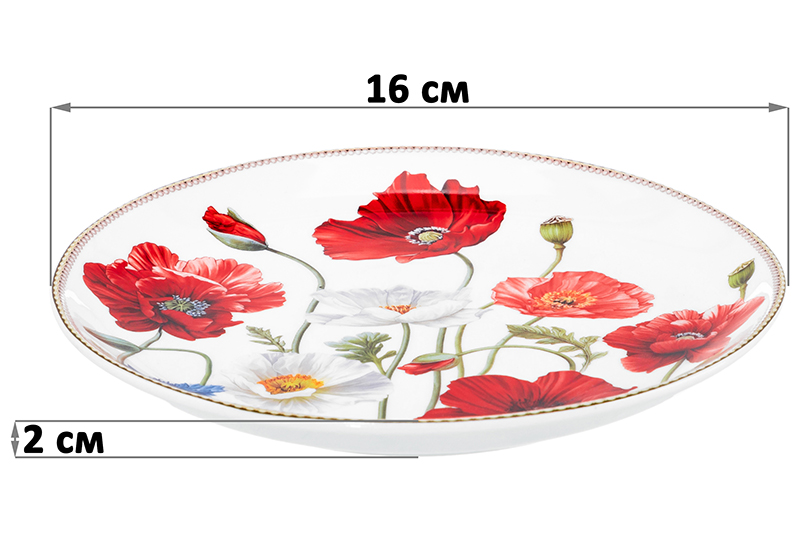 Набор 2 круглых тарелок Elan Gallery "Маки" выполнен из фарфора new bone china, сочетающего в себе изящность и высокую прочность. Размер каждого изделия — 16х16х2 см. За счёт гладкости изделия легко отмываются, поэтому долго сохраняют привлекательный вид и практичны в использовании. Плотная структура материала позволяет посуде дольше сохранять температуру блюд и напитков. От других видов костяного фарфора new bone china отличается большей экологичностью в производстве. Фарфоровая посуда с ярким цветочным рисунком станет изящным дополнением интерьера любой кухни или столовой. Удобно использовать для десерта. Пирожковые тарелочки станут украшением интерьера кухни или гостиной. Положите на сервировочное блюдце кусочек торта, домашнего пирога или пирожное. Небольшая тарелочка подойдёт для подачи закусок: сырной нарезки, сырокопчёной колбасы или свежих овощей и зелени. Разместите на десертном блюде выпечку и сыр, чтобы перекусить за чашечкой кофе на завтрак. Фарфоровая посуда отличается от керамической повышенной плотностью. Фарфор не впитывает цвет продуктов и не деформируется от влаги, чему может быть подвержена керамика. Блюдечко легко отмывается и долго сохраняет привлекательный вид. Маленькие блюдца для сладостей восхитят ваших гостей и добавят элегантности при сервировке стола как в будни, так и на праздник. Не рекомендуется применять абразивные моющие средства. Подходят для использования в посудомоечной машине и микроволновой печи. Поставляются в красивой картонной коробке – благодаря ей вам не потребуется дополнительная подарочная упаковка. Набор станет оригинальным подарком для любой хозяйки и незаменимым элементом сервировочного инвентаря в вашем доме!