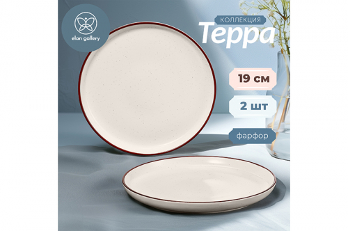 Набор 2 круглых тарелок с прямыми бортиками от Elan Gallery "Терра" выполнен из фарфора. Размер каждого изделия — 19х19х2 см. Серия фарфоровой посуды «Терра» – это погружение в атмосферу прибрежной лёгкости, тёплых песочных пляжей и природной гармонии. Белую поверхность украшает россыпь чёрных крапинок, а коричневый кант придаёт изделиям глубину. Тарелочки можно использовать как десертные или для вторых блюд. Положите на сервировочное блюдце кусочек торта, домашнего пирога или пирожное. Небольшая тарелочка подойдёт для подачи закусок: сырной нарезки, сырокопчёной колбасы или свежих овощей и зелени. Разместите на блюде выпечку и сыр, чтобы перекусить за чашечкой кофе на завтрак. Фарфоровая посуда отличается от керамической повышенной плотностью. Фарфор не впитывает цвет продуктов и не деформируется от влаги, чему может быть подвержена керамика. Блюдечко легко отмывается и долго сохраняет привлекательный вид. Не рекомендуется применять абразивные моющие средства. Можно использовать в микроволновой печи и мыть в посудомоечной машине. Комплект поставляется в стильной картонной коробке. Станет прекрасным подарком на любой праздник. Благодаря стильной коробочке не понадобится дополнительная подарочная упаковка! Красивые блюдца восхитят ваших гостей и добавят элегантности при сервировке стола как в будни, так и на праздник. В коллекции бренда Элан Галерея можно найти много красивых товаров для дома, например, кухонный инвентарь и декоративные изделия на любой вкус. Коллекция «Терра» наполнит ваш дом свежестью и естественным уютом, создавая пространство для незабываемых мгновений.