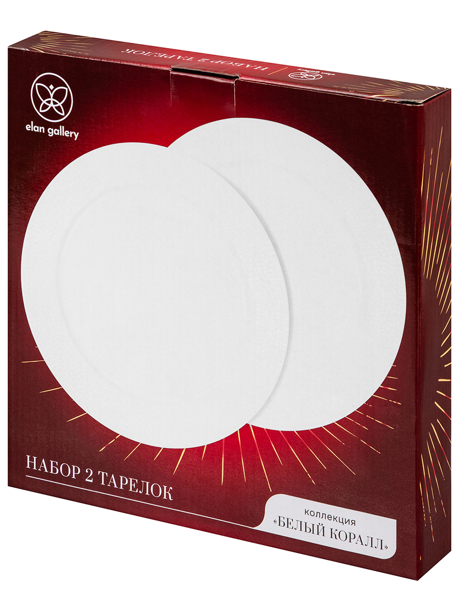 Набор 2 круглых тарелок Elan Gallery "Белый коралл" выполнен из фарфора. Размер каждого изделия — 20,5х20,5х2 см. Коллекция "Белый коралл" украшена рельефом, вдохновлённым природной текстурой морских кораллов. С ней вы словно переноситесь на солнечное побережье, где можно насладиться свежим морским воздухом, тёплым песком и ощущением лёгкости. Столовая посуда станет изящным дополнением интерьера любой кухни или столовой. Удобно использовать для десерта или небольших порций вторых блюд. Положите на сервировочное блюдце кусочек торта, домашнего пирога или пирожное. Небольшая тарелочка подойдёт для подачи закусок: сырной нарезки, сырокопчёной колбасы или свежих овощей и зелени. Разместите на десертном блюде выпечку и сыр, чтобы перекусить за чашечкой кофе на завтрак. Фарфоровая посуда отличается от керамической повышенной плотностью. Фарфор не впитывает цвет продуктов и не деформируется от влаги, чему может быть подвержена керамика. Блюдечко легко отмывается и надолго сохраняет привлекательный вид. Блюдца для сладостей восхитят ваших гостей и добавят элегантности при сервировке стола как в будни, так и на праздник. Беречь от механических повреждений и резких перепадов температур. Не рекомендуется применять абразивные моющие средства. Подходят для использования в посудомоечной машине и микроволновой печи. Поставляются в стильной коробке с логотипом бренда. Станут приятным подарком на праздник – благодаря красивой коробочке не понадобится подарочная упаковка. Коллекция "Белый коралл" от Elan Gallery подарит вам атмосферу уюта, тепла и безмятежности в любое время года!