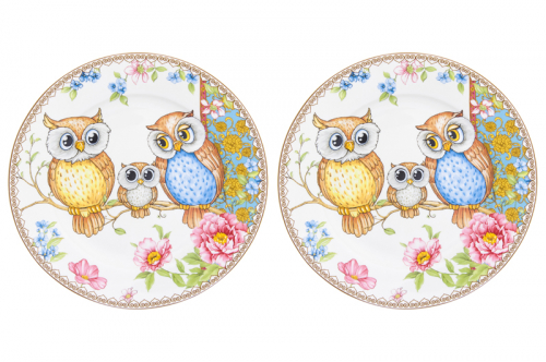 Набор тарелок для десертов 2 пр. 19*19*2 см "Совушки" NEW BONE CHINA