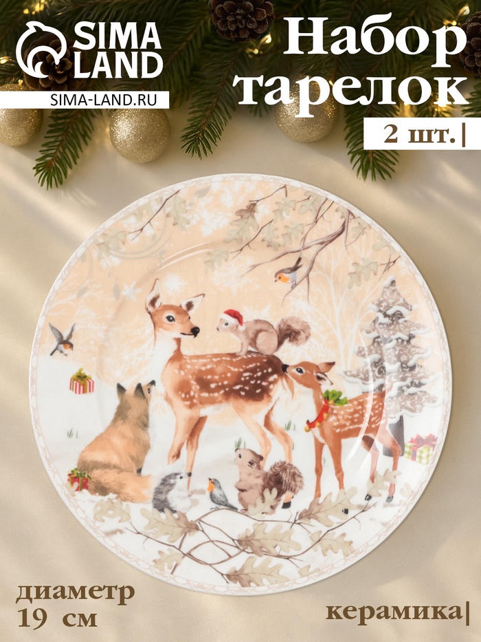 [НГ сервировка122] [нг тарелка122] Набор плоских тарелок «Лесное чудо» с сказочными животными – это практичный и красивый выбор для новогоднего стола. Тарелки из керамики с ярким рисунком подчеркнут особенность праздника и добавят уюта в зимние дни.