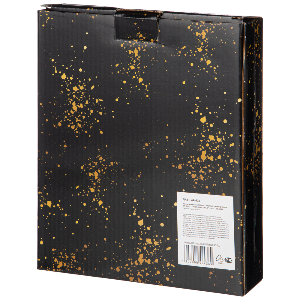 Коллекция "MIDNIGHT GOLD" ТМ BRONCO - это ультрамодная сервировка стола. Черный с золотыми брызгами и окантовкой фарфор. Глубокое матовое покрытие. Каждый предмет коллекции уникален. Тарелки в виде форм для запекания, сковородок, чугунков, элементы поверхности гриль на дне изделий - все это делает Ваш стол неповторимым! Посуда прошла сертификацию. Безопасна для контакта с пищевыми продуктами. С осторожностью использовать изделия в посудомоечной машине и микроволновой печи по причине возможного повреждения золотого декоративного покрытия. Рекомендуется применять мягкие средства для мытья в посудомоечной машине.