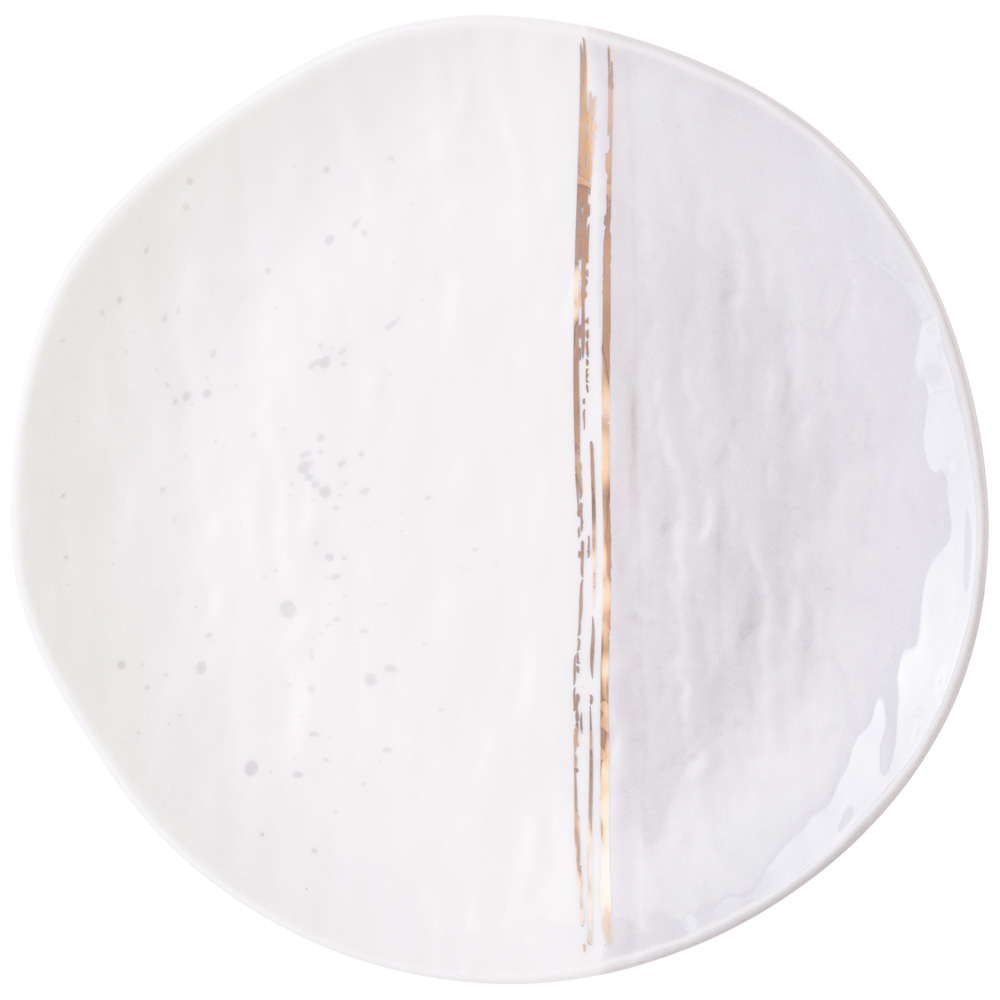 Легкая и воздушная посуда для сервировки "Grey" ТМ LEFARD - это модно и современно. Неоспоримое сочетание белого и серого цветов, тонких золотых полос и брызг украсит любой прием пищи - легкий завтрак, плотный обед и романтический ужин. Обеденные и закусочные тарелки, салатник, кружки и чайная пара выполнены из упрочненного фарфора. Вы и Ваш стол неотразим! Посуда прошла сертификацию. Безопасна для контакта с пищевыми продуктами. Не рекомендуется использовать в микроволновой печи, мыть в посудомоечной машине.