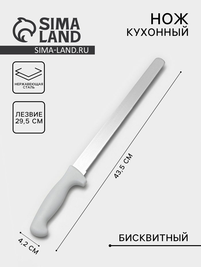Нарезка бисквита — занятие куда более хлопотное, чем кажется. Его рыхлая структура делает применение стандартного кухонного ножа неоправданным: кулинарный шедевр, на приготовление которого было затрачено столько продуктов, сил и времени, будет крошиться и потеряет аппетитный вид.