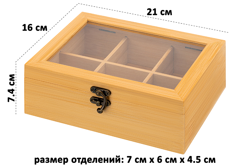 Органайзер для чайных пакетиков 21*16*7,4 см с крышкой, бамбук