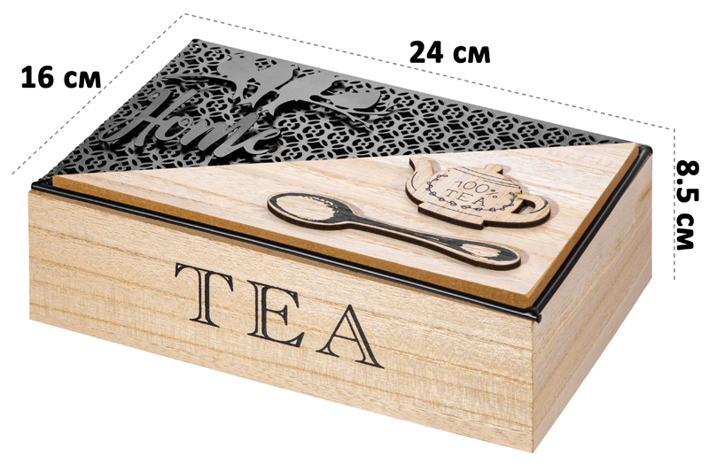 Органайзер для чайных пакетиков 24*16*8,5 см "100% Tea" с крышкой