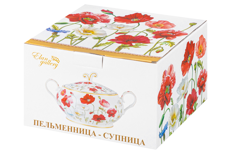 Пельменница - супница 30*22,5*18 см 2,6 л "Маки" + крышка NEW BONE CHINA