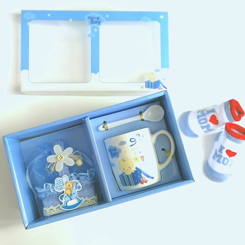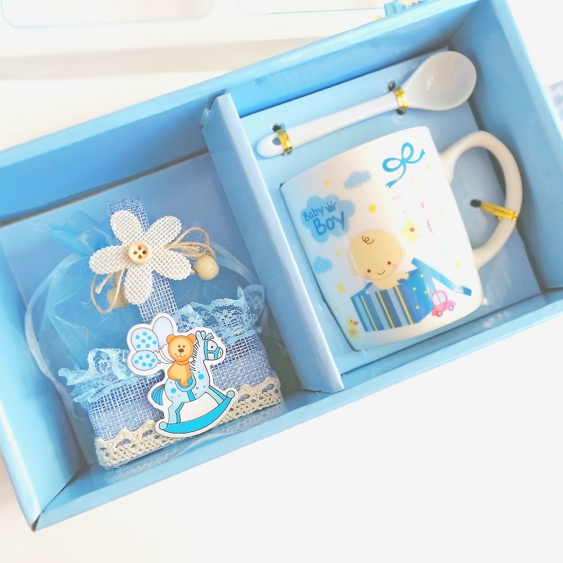 Подарочный набор из кружки, ложки и корзинки для мальчика, из фарфора