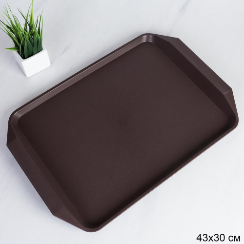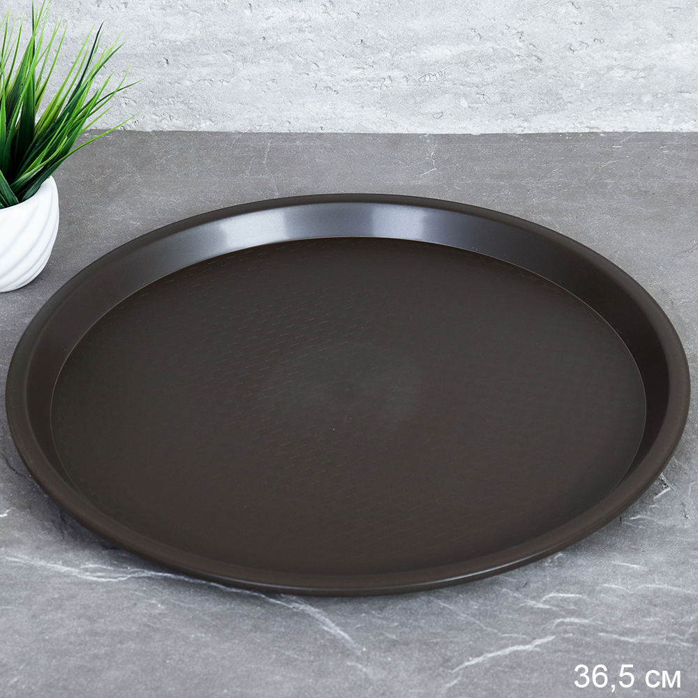 Поднос антискользящая поверхность 35 см круглый / HY-4 /уп 50/коричневый