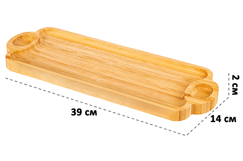 Сервировочный поднос от Elan Gallery предназначен для эстетичной подачи к столу. Размер изделия – 39х14х2 см, внутренний размер – 32х12,5 см. Выполнен из натурального бамбука и оснащён бортиками, которые обеспечат устойчивость посуды и предотвратят соскальзывание угощений. Используйте его для удобной сервировки готовых блюд и разнообразных напитков. Деревянная подставка также защитит поверхности столов и столиков от воздействия высоких температур. Подходит для использования в качестве сервировочной доски: прочная поверхность позволит подавать закуски без дополнительной посуды. За завтраком порадуйте себя бутербродами с сыром или колбасной нарезкой. Красиво преподнесите большие порции орешков, сухофруктов или канапе на праздничной вечеринке. Проведите уютное чаепитие, задействовав большую тарелку в качестве конфетницы: заполните её вашими любимыми сладостями, конфетами и десертами. Натуральный цвет дерева и мягкая форма гармонично впишут поднос в интерьер любой кухни, столовой или гостиной, делая его не только функциональным, но и декоративным элементом вашего кухонного инвентаря. Не рекомендуется применять абразивные моющие средства. Не подходит для замачивания, использования в посудомоечной машине и микроволновой печи. После мытья тщательно протрите поверхность сухой тканью. Хранить вдали от нагревательных приборов при нормальном уровне влажности. Универсальный поднос станет оригинальным подарком для каждого, кто ценит не только практичность, но и привлекательность. В коллекции бренда Элан Галерея вы найдёте разнообразную столовую утварь, которая поможет сделать сервировку удобной и стильной.