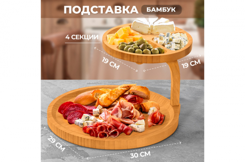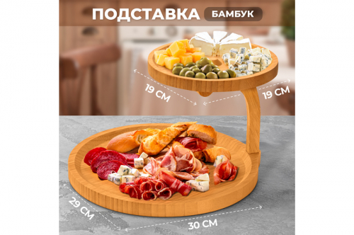 Подставка 2-уровневая круглая 30*29*18,5 см, многофункциональная, бамбук