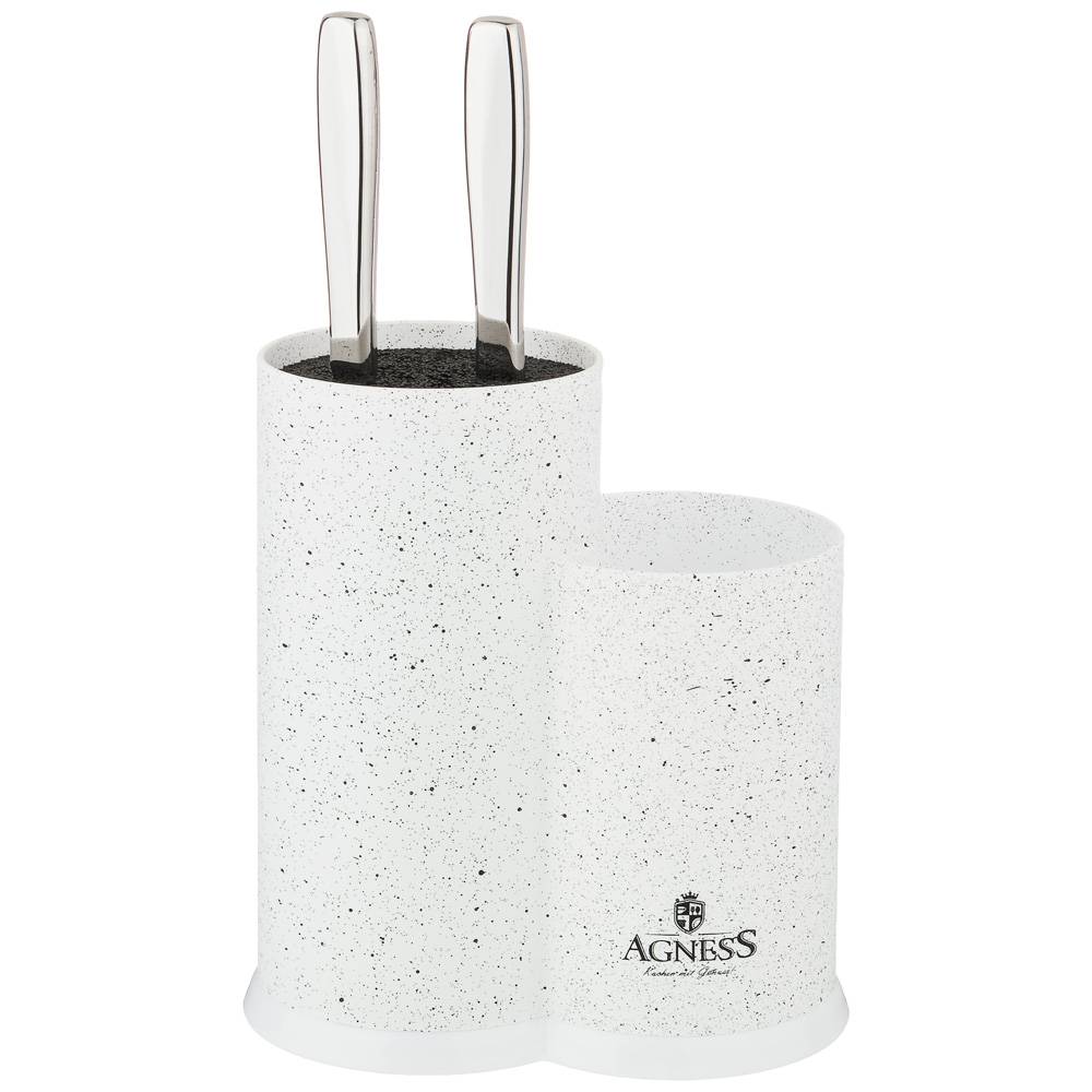 Подставка для ножей – необходимый аксессуар на каждой кухне. Подставка AGNESS с наполнителем легко и удобно решает проблему хранения ножей, защищая лезвия ножей от загрязнения. Дополнительный отсек можно использовать для хранения различных кухонных аксессуаров.