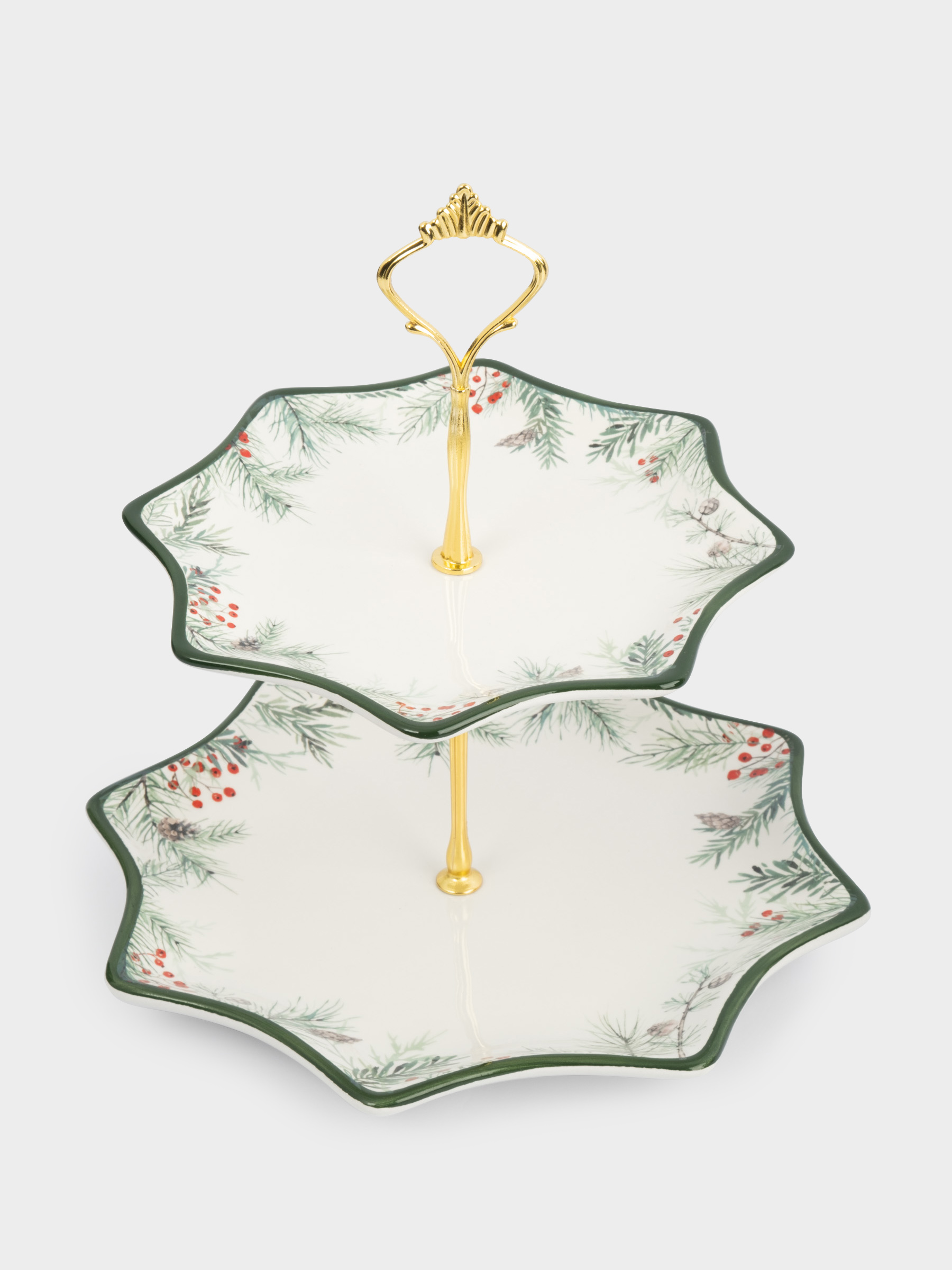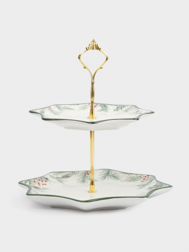 Подставка для пирожных, 25х20/24 см, 2 яруса, керамика/металл, Еловые ветки, Festival