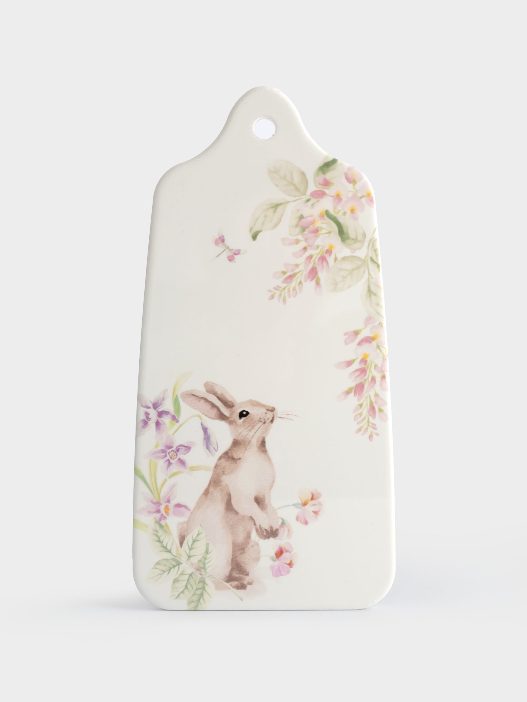 Подставка под горячее, 14x28 см, керамика/пробка, белая, Кролик в цветах, Flower Rabbit