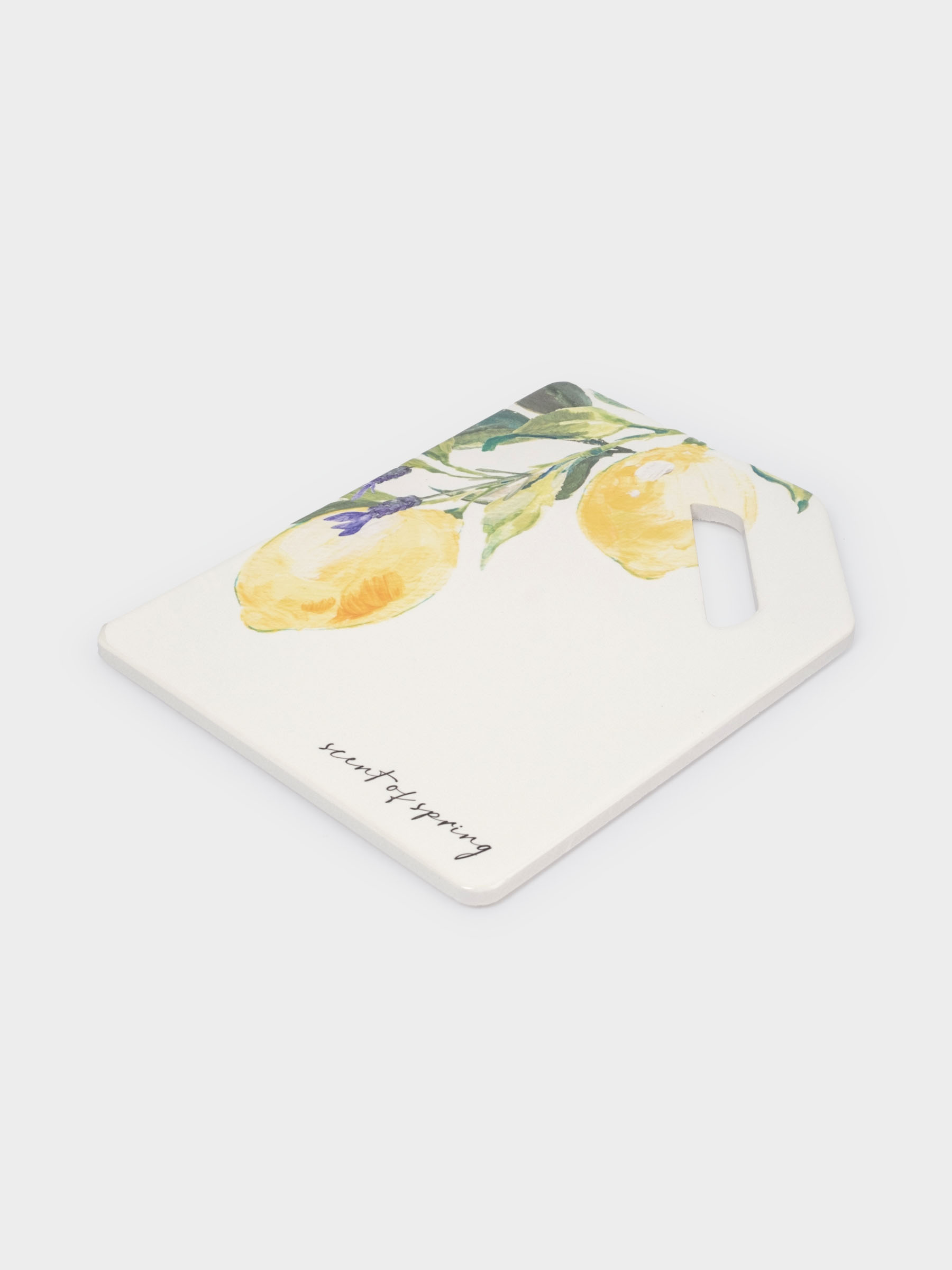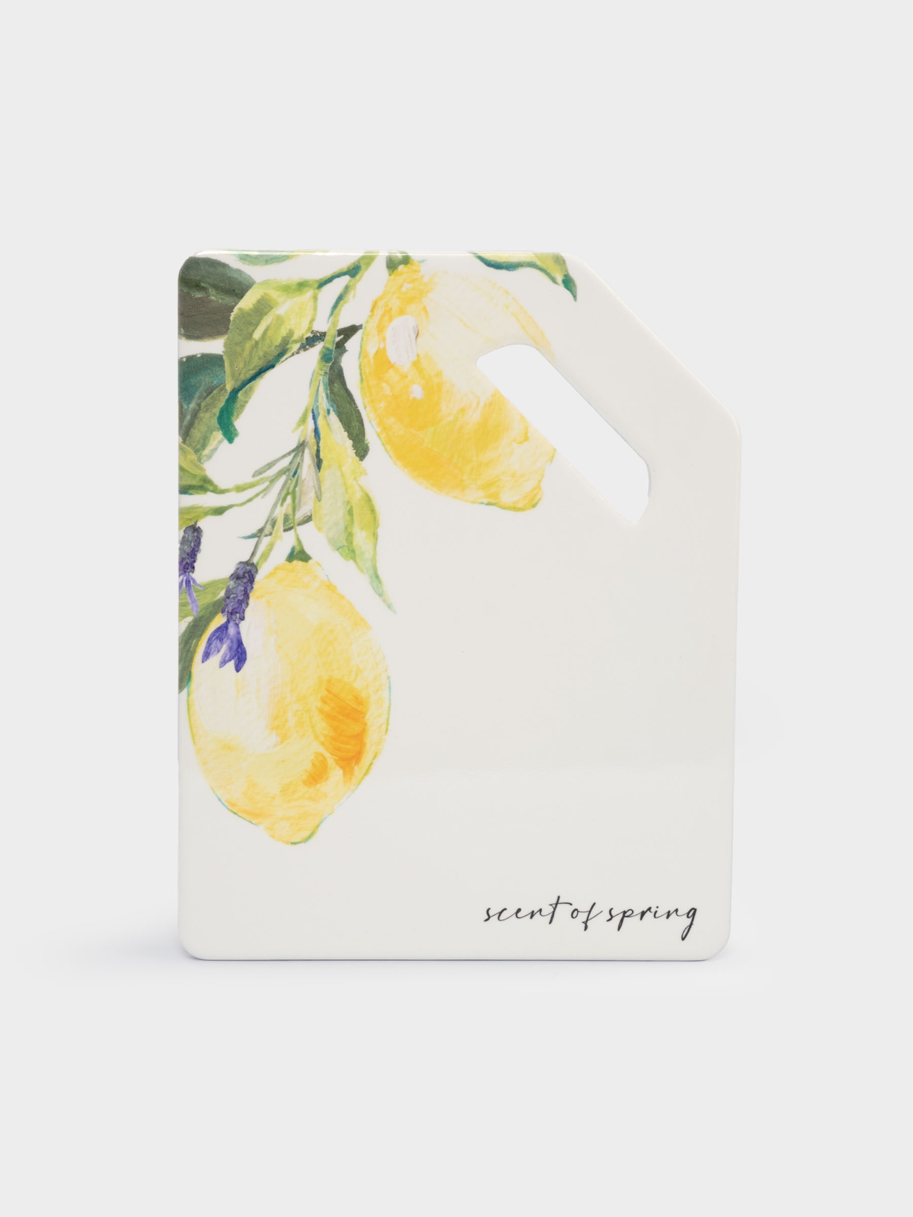 Подставка под горячее, 24x18 см, с ручкой, керамика/пробка, белая, Лимон на ветке, Palermo