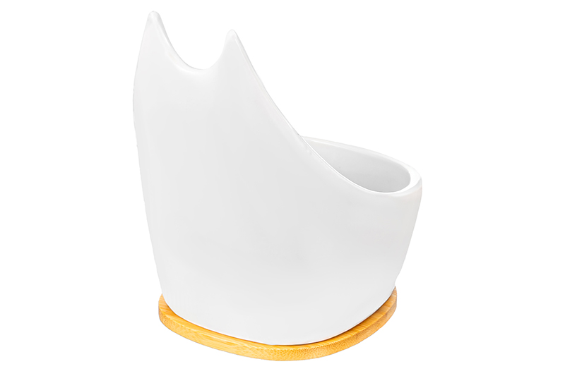 Подставка под ложку Elan Gallery "Айсберг" размером 9,5х9,5х13,5 см выполнена из фарфора. Глубина фарфоровой ёмкости 180 мл. Имеет несъёмное бамбуковое основание размером 8х8х0,5 см. Фарфоровая ложка и подставка из бамбука – одно целое. В процессе готовки вы можете положить на неё любые столовые приборы: ложки, вилки и лопатки, чтобы не испачкать поверхность. Изделия из фарфора не впитывают цвет и не деформируются от влаги, чему может быть подвержена керамика. Настольная подставка поможет сохранить стол в чистоте во время приготовления пищи. Не рекомендуется применять абразивные моющие средства. Из-за бамбуковой части эту модель нельзя использовать в посудомоечной машине и микроволновой печи. Бамбук нельзя замачивать! Посуда поставляется в стильной картонной упаковке. Полезный кухонный инвентарь станет чудесным подарком на любой праздник. Удобное приспособление для столовых приборов станет незаменимым помощником в процессе приготовления пищи и украсит интерьер вашей кухни. В ассортименте бренда Элан Галерея представлено много красивой посуды, кухонных принадлежностей и стильных товаров для дома. Выберите варианты на свой вкус!