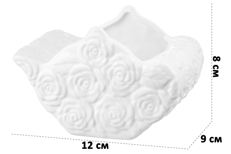Подставка из серии «Розы» от Elan Gallery предназначена для эстетичной сервировки вашего стола. Размер изделия – 12х9х8 см, объём — 300 мл. Выполнена из высококачественного белого фарфора. Он не впитывает цвет продуктов и напитков и легко отмывается, благодаря чему надолго сохраняет свою белизну. Поверхность изделия украшают рельефные узоры в виде пышных бутонов роз. Подставка идеально подойдёт для подачи и хранения чайных пакетиков, а также пакетиков с сахаром и солью. Используйте её как органайзер для салфеток, зубочисток и других гигиенических принадлежностей. Она поможет сервировать разнообразные мелкие закуски – оливки, орехи, сухофрукты и ягоды. Изящно подайте в ней порцию клубники, чтобы разнообразить свой стол, или заполните маленькими сладостями – конфетами, леденцами и мармеладом. Не рекомендуется применять абразивные моющие средства. Подходит для использования в посудомоечной машине и микроволновой печи. Поставляется в дизайнерской картонной коробке – благодаря ей вам не потребуется дополнительная подарочная упаковка. Фарфоровая сервировочная посуда будет оригинальным подарком для хозяйки, ценящей не только практичность, но и привлекательность. Серия «Розы» от бренда Элан Галерея станет украшением любого кухонного инвентаря и позволит собрать красивый сервиз в едином стиле!