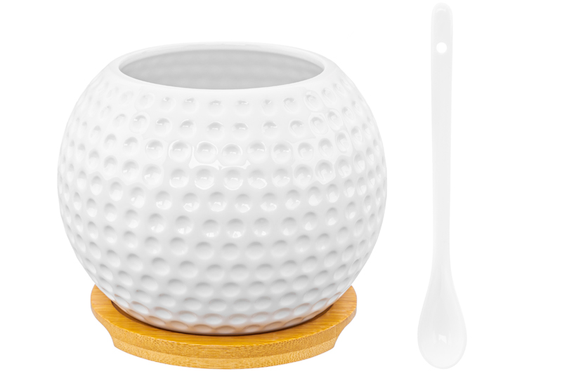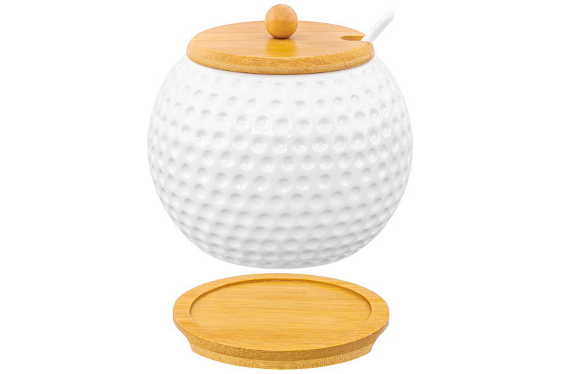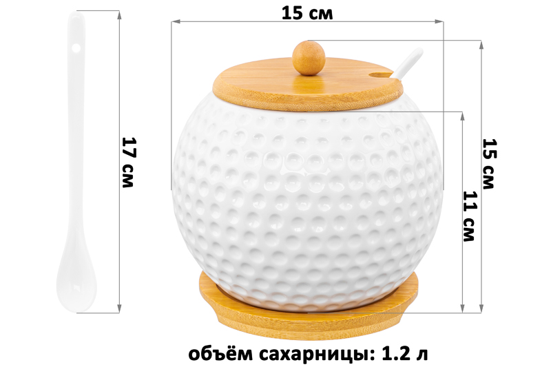 Сахарница 1,2 л 15*15*15 см "Сфера" + ложка + дер. крышка на дер. подставке