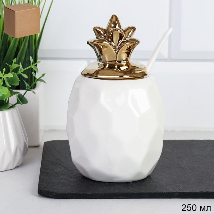 Сахарница 250 мл с ложкой Ананас / CF432 /уп 54/белая/желтая ЗАВОДСКОЙ БРАК