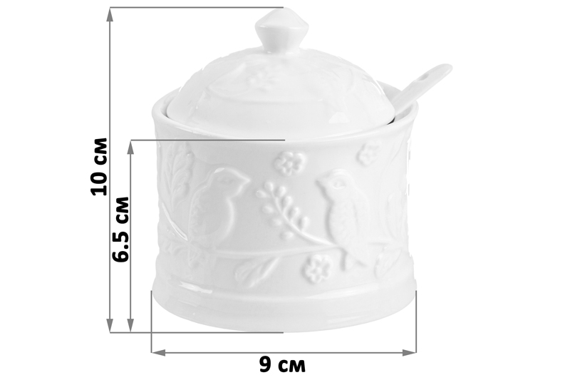 Хорошая сахарница, нравится эта серия с птичками. Ложечки нет, была из распродажи