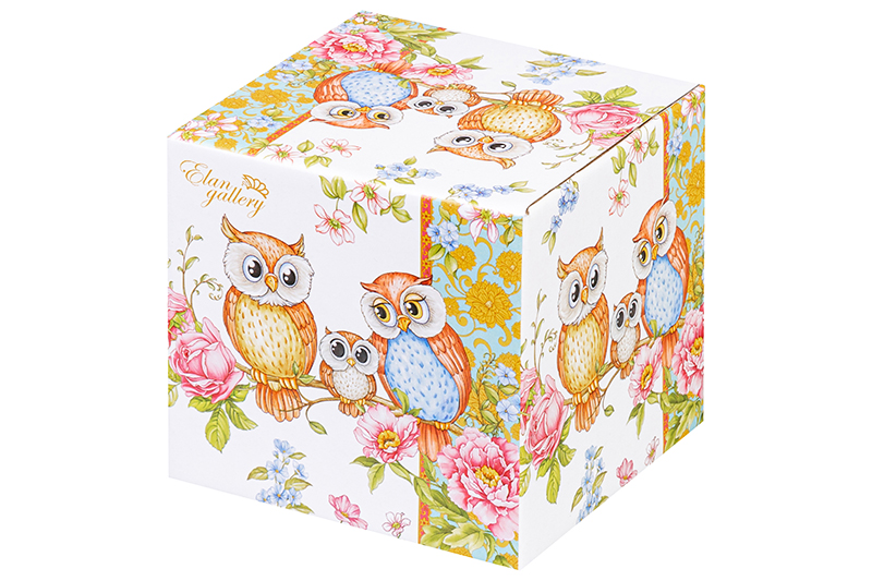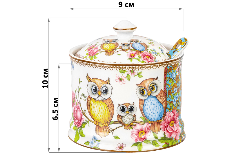 Сахарница 250 мл 9*9*10 см "Совушки" + ложка, NEW BONE CHINA