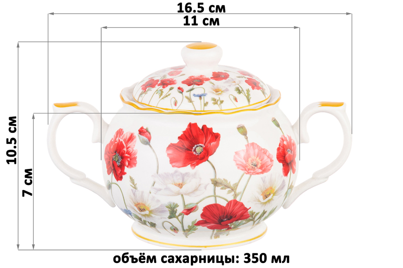 Сахарница 350 мл 16,5*11*10,5 см "Маки" NEW BONE CHINA