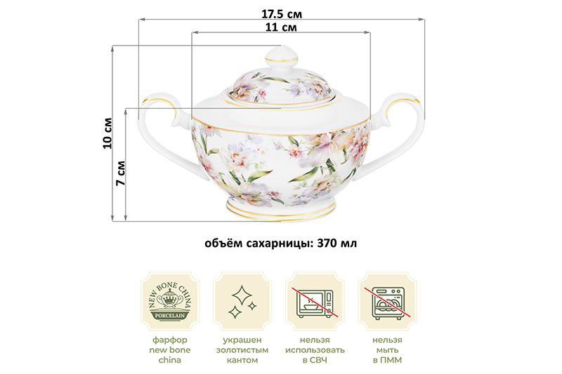 Сахарница 370 мл 17,5*11*10 см "Корнелия" NEW BONE CHINA