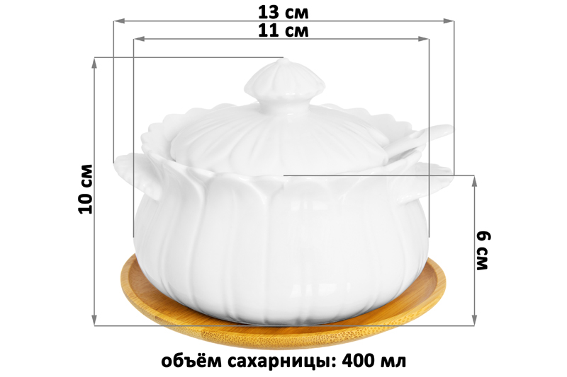 Сахарница 400 мл 13*11*10 см "Цветок" + ложка + дерев. подставка